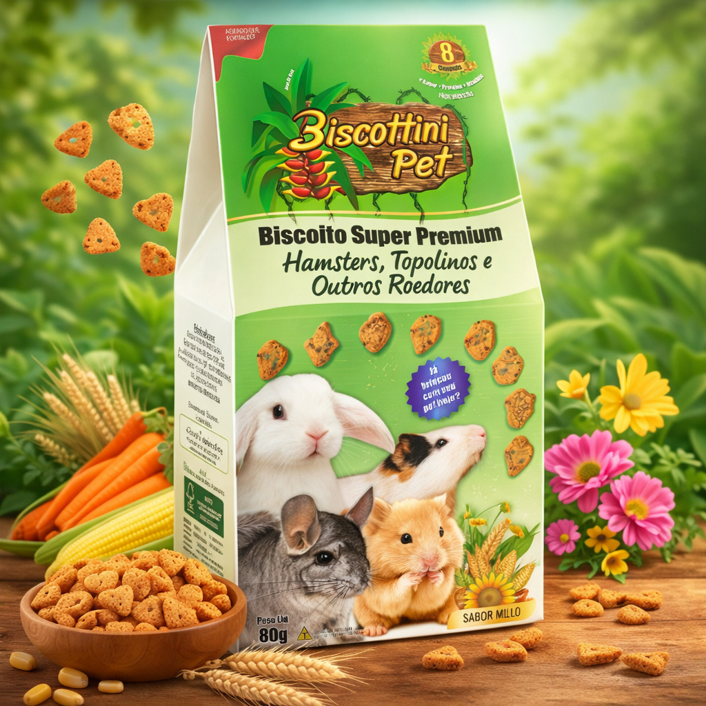O Biscoito Biscottini Pet Super Premium Roedores, é um biscoito saboroso e crocante muito apreciado pelas aves, que pode ser oferecido diariamente como petisco ou recompensa. O Biscottini Pet tem vários formatos (maçã, morango, caju, milho, uva, cenoura, pêssego e folhinha) no tamanho ideal para que você possa adestrar, interagir, distrair e se divertir com a seu pet.